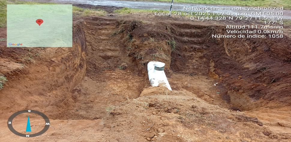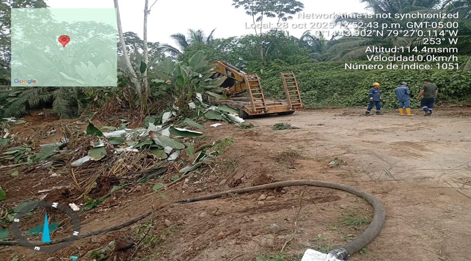 Tubería del poliducto desde donde ocurrió el derrame de diésel se encuentra ya reparada. Durante el camino se observaron huecos cavados para retener el diesel, hay riachuelos contaminados que van a parar al estero Pámbula y este a su vez al río Blanco de Quinindé. Los trabajadores de Petroecuador ya empezaron a hacer la limpieza respectiva, a recoger el diésel y a aplicar los planes de contingencia necesaria para minimizar el impacto ambiental que podría ocasionar un derrame de estos. Según la versión de algunos moradores se trata de un caliche lo que ocasionó la ruptura del poliducto. Petroecuador manifestó que hay presunción de que alguien pudo haber perforado el poliducto y como en ese momento estaban bombeando diésel empaquetado, la manguera saltó por la fuerza del bombeo y ocurrió el derrame que llegó hasta la carretera principal. Se afectó una hacienda de plantación de palma africana. Se espera que no vuelva a ocurrir otro desastre de estos.